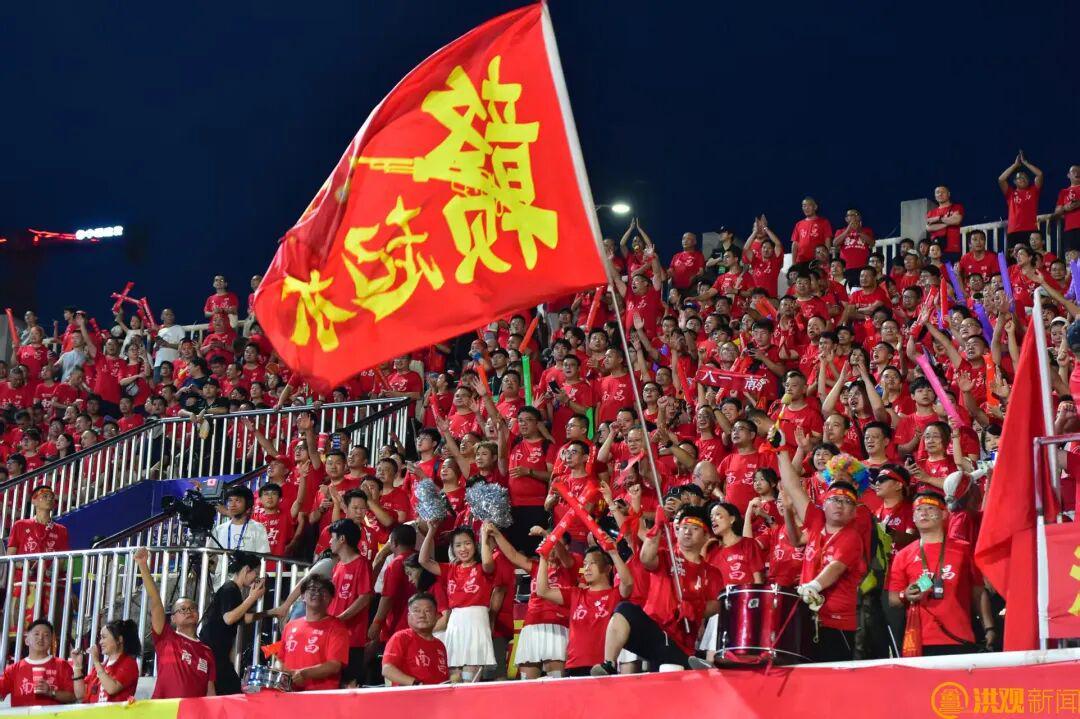 南昌洪城球迷协会的成员们忙着调试鼓乐、